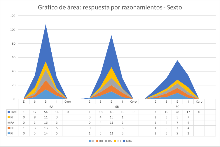 Gráfico 2: Gráfico de área: respuesta por razonamientos – sexto