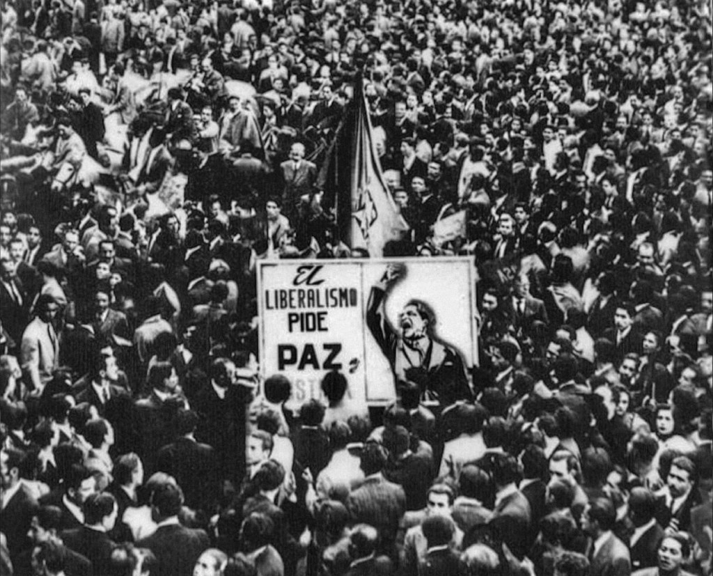 En este punto, se consideró al bipartidismo como el principal responsable del desplazamiento forzoso en los campos colombianos, de la persecución armada y de la violencia política que causaron el inicio de un nuevo periodo de ideologías políticas y violencia: las guerrillas y las autodefensas. En este nuevo periodo de violencia se formaron dos bandos ideológicos basados en los partidos liberales y conservadores por un lado, el bando conservador al poder del ejército nacional y con apoyo de la iglesia, y por el otro el bando liberal con ideologías comunistas y socialistas: “El campo fue el campo de batalla: las zonas liberales o comunistas fueron atacadas por organizaciones campesinas armadas por el Gobierno, los políticos y los terratenientes con el respaldo militante de la Iglesia y de sectores de la fuerza pública” (Molano, 2015). Ante una desigualdad armada y militar, ciertos grupos civiles se opusieron a la opresión conservadora dándole paso a la creación de los grupos guerrilleros de izquierda que tenían como principal objetivo enfrentar las fuerzas conservadoras. “La fuerza pública se mostró incapaz de controlar el movimiento guerrillero y apeló a fomentar el paramilitarismo en colaboración con los intereses afectados por la insurrección” (Molano, 2015). El paramilitarismo surge como una respuesta del Gobierno conservador colombiano ante la incapacidad de confrontar los grupos guerrilleros que difundían el comunismo en Colombia, pero también como respuesta de los campesinos que eran desplazados por estos grupos al margen de la ley. En el transcurso de estos años, empezaron a ocurrir las primeras intervenciones por parte del Gobierno estadounidense, las cuales demostraron que “EE. UU. apoyó a los conservadores (…). Acusaba a Gaitán de ser un comunista enmascarado” (Molano, 2015). Posteriormente se comprobó que la disputa entre ideologías se basaba en influencias políticas exteriores a la nación, donde la potencia mundial más grande del mundo decidió combatir el comunismo no solo en su territorio, sino también en Colombia: “el 6 de septiembre decretó «la prohibición del comunismo internacional en Colombia». Fue una norma copiada de la Ley de Control del Comunismo aprobada por el Congreso de Estados Unidos dos semanas antes en Washington, que a su vez se basaba en The Subversive Activities Control Act of 1950” (Molano, 2015).