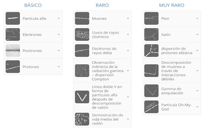 Figura 7. Identificación de partículas según el rastro dejado en la cámara de niebla.