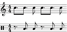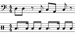 Las Figuras 7 y 8 muestran los dos patrones rítmicos principales de la sección A. Ambos ritmos se acoplan a la voz de arriba del instrumental Hot This Year (Figura 2) y al patrón del instrumental Bam Bam (Figura 4). Al patrón rítmico A1 se acoplan en su totalidad, mientras que el A2 cuenta con cierta variación en el tercer tiempo.