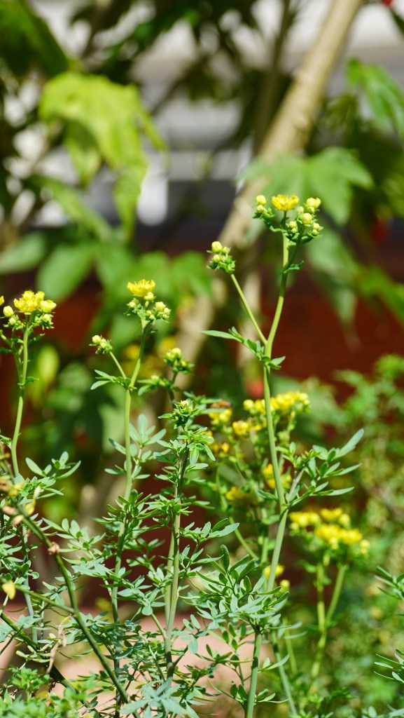 No obstante, a pesar de la presencia de flores amarillas en la ruda, en la literatura científica se encuentra que la ruda está catalogada como planta aromática con propiedades repelentes contra insectos plagas, lo que limita las visitas posibles a esta planta a solo polinizadores; “plantas tales como ruda, menta, manzanilla, orégano, albahaca, hierbabuena, contienen terpenoides como los metabolitos secundarios, dentro de estas sustancias están las alomonas que actúan como repelentes hacia los insectos” (Garcés, 2021), y contrasta con los hallazgos de esta investigación con un total de 119 visitas (número que es cercano a la cantidad de visitas en los abutilones). Esto podría explicarse porque la ruda se encuentra cerca de un abutilón, así “en el ámbito de la polinización, existe gran evidencia de que flores menos atractivas o sin recompensa son más visitadas cuando se encuentran cerca de flores más atractivas o con recompensa” (Gavini y Frarji-Brener, 2015).